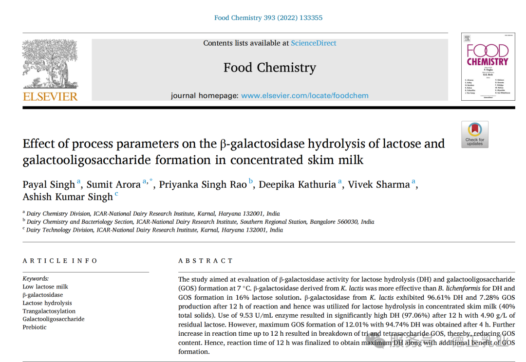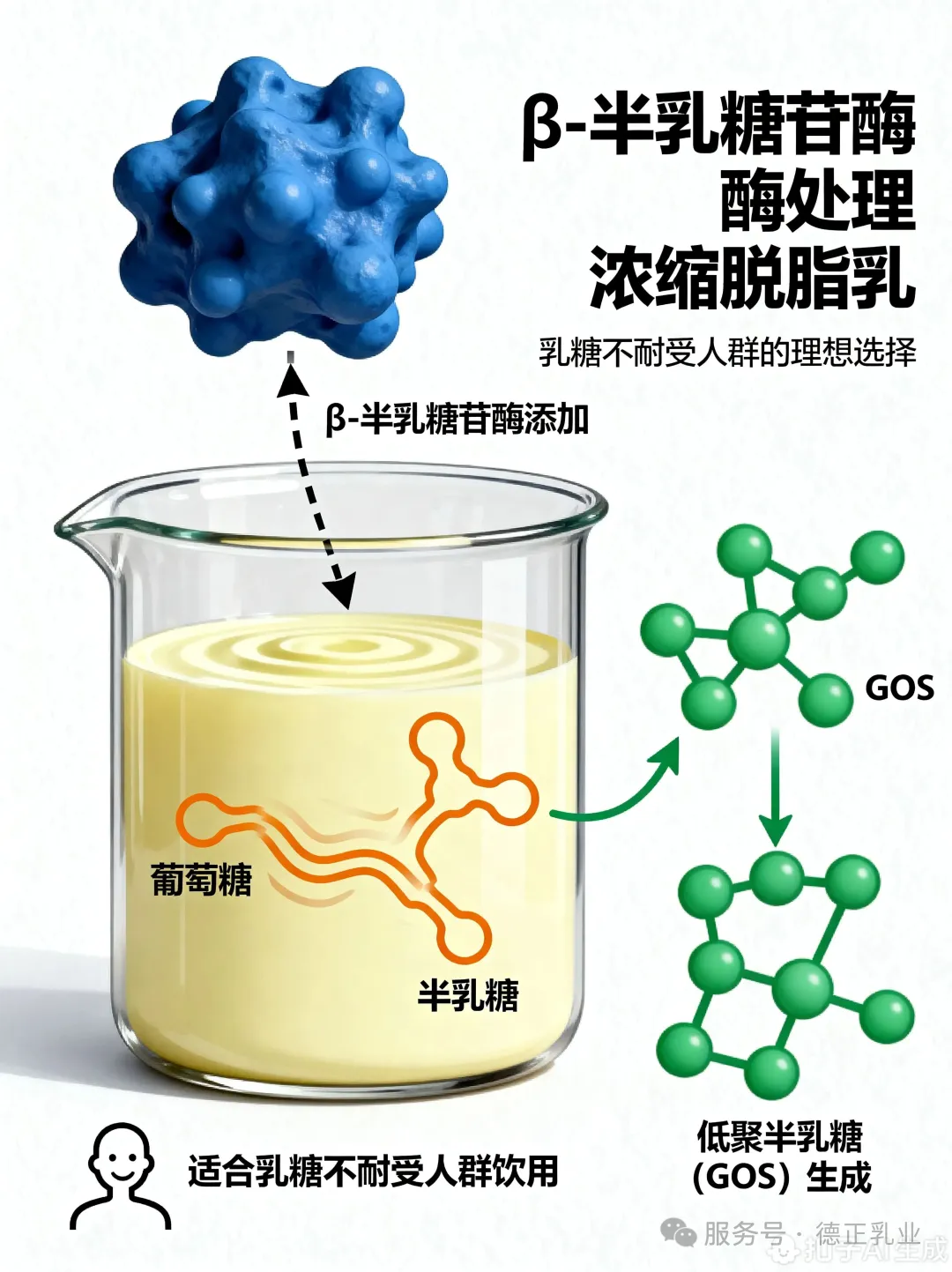 这篇文章其实就是研究 “怎么用一种叫 β- 半乳糖苷酶的“工具”,把浓缩脱脂乳里的乳糖变少,做成适合乳糖不耐受人群喝的牛奶,还能顺便产生一种对肠道好的东西(叫低聚半乳糖,简称 GOS)”。