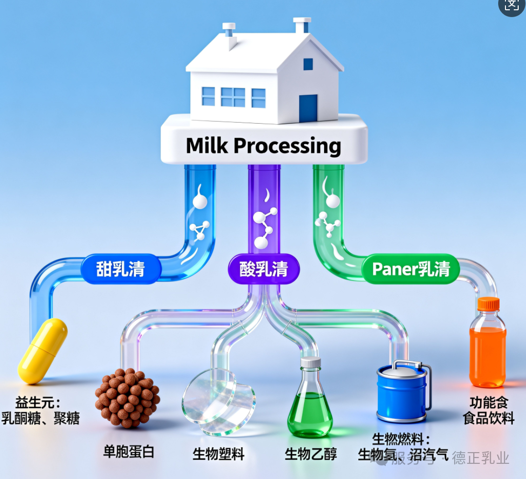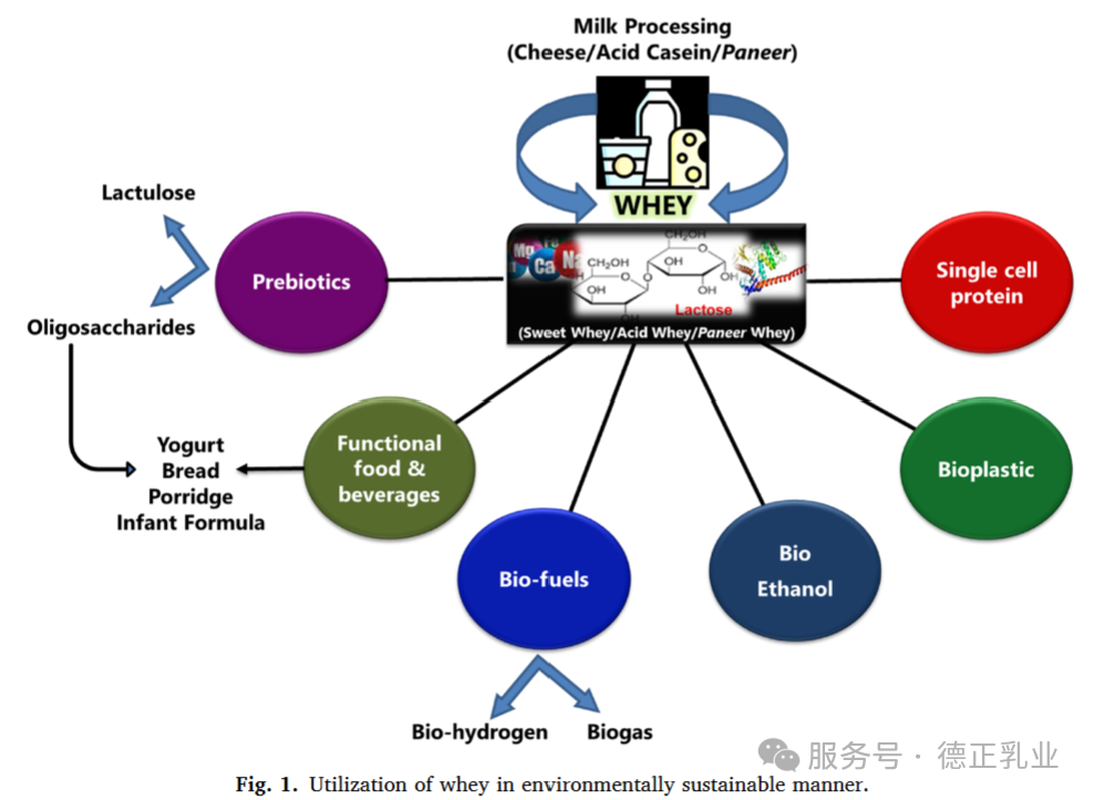 (图 1)展示了乳清以环境可持续的方式被利用的途径